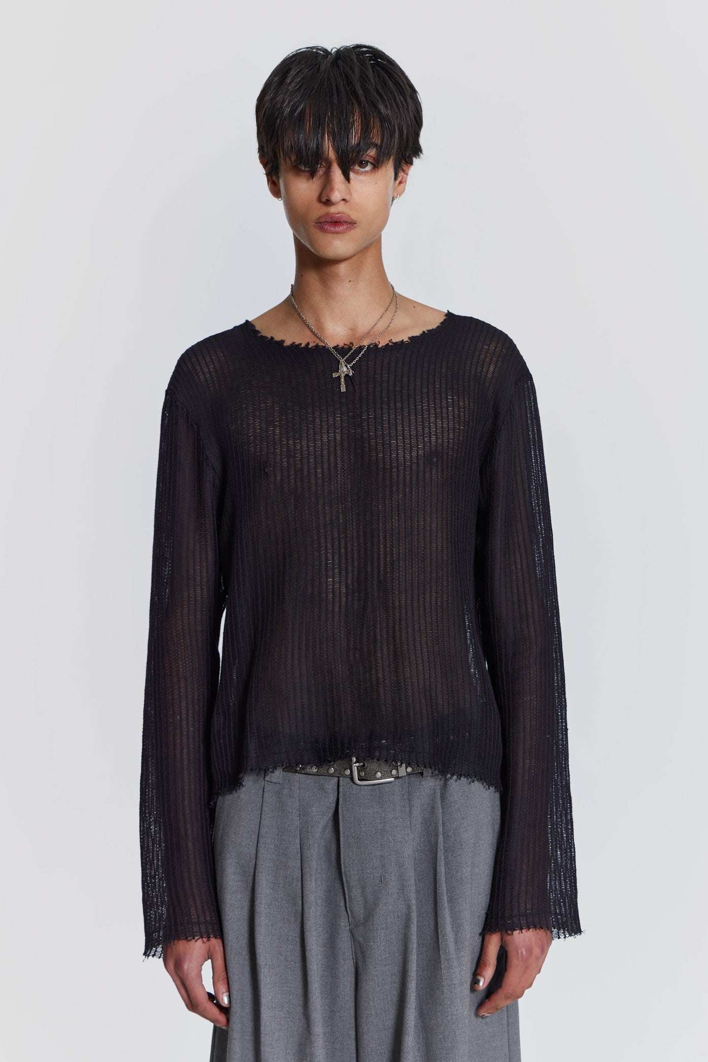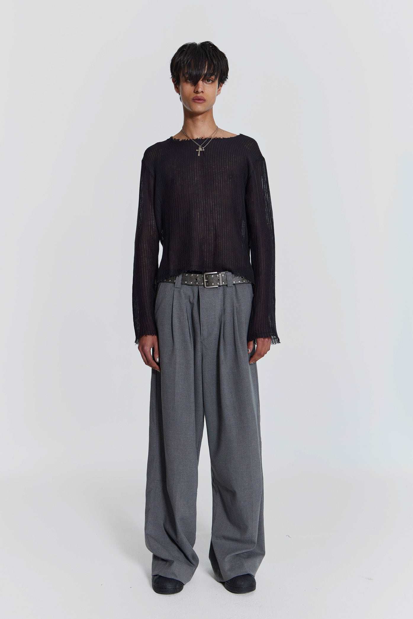Sombre Été, inspired by Parisian 00's grunge. Featuring heavily laundered faux leather, signature acid wash and dye placements, tailoring updates, sheer layering, distressed finishing, provocative slogan tees and heavy metal hardware. This collection embodies the spirit of an off-duty rock-star embracing the allure of rebellion and boycotting a traditional Summer.