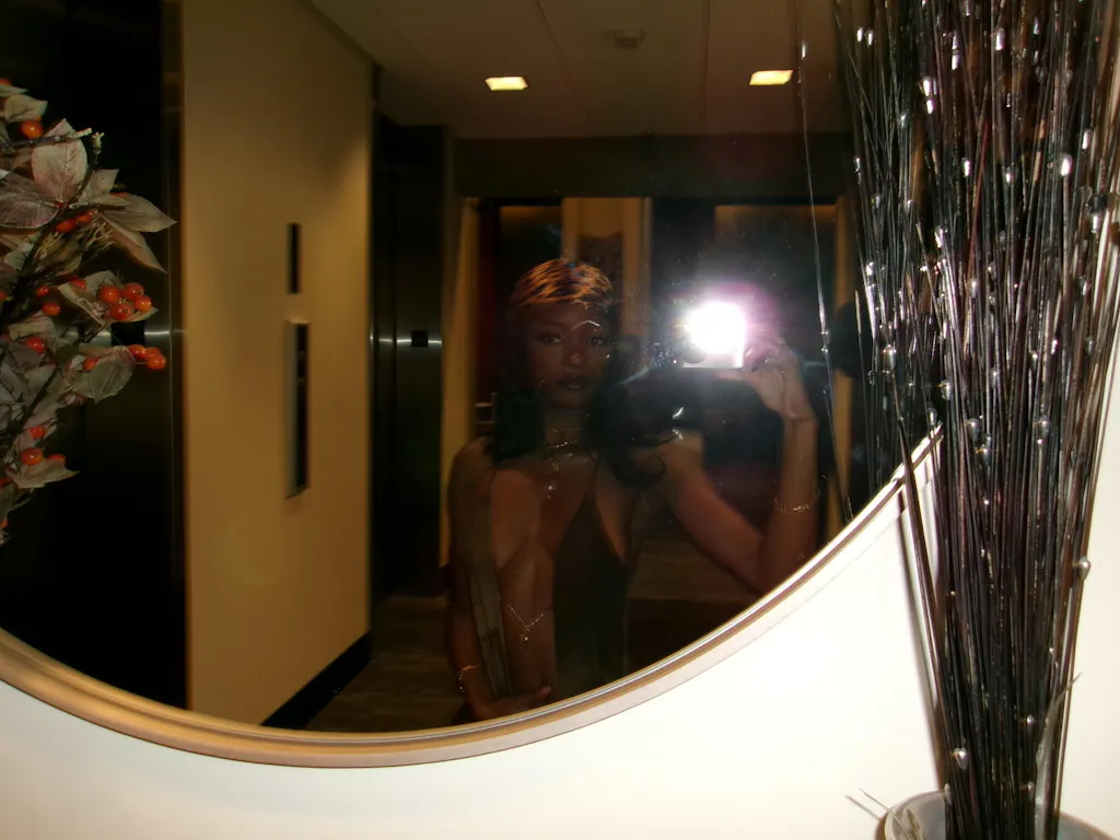 • Gold chain and charm attachment at middle