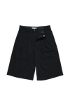 Crafted with an oversized fit, these black volume tailored baggy shorts feature a fixed waistband with belt loops along with a twin pleat at the waistband for added volume and back jet pockets.