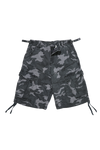 Washed Black Cadet Camo Baggy Shorts with distressed effect