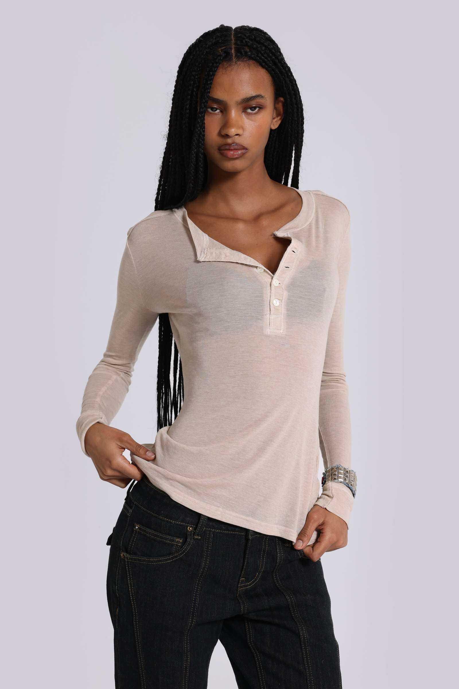 Jexa Jewel Studded Long Sleeve Top