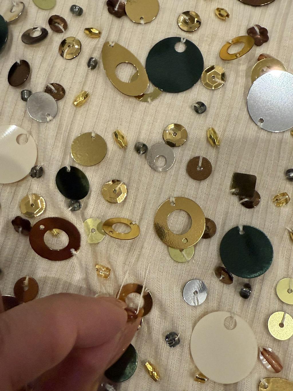 This style is hand-beaded so number of beads/sequins will vary.